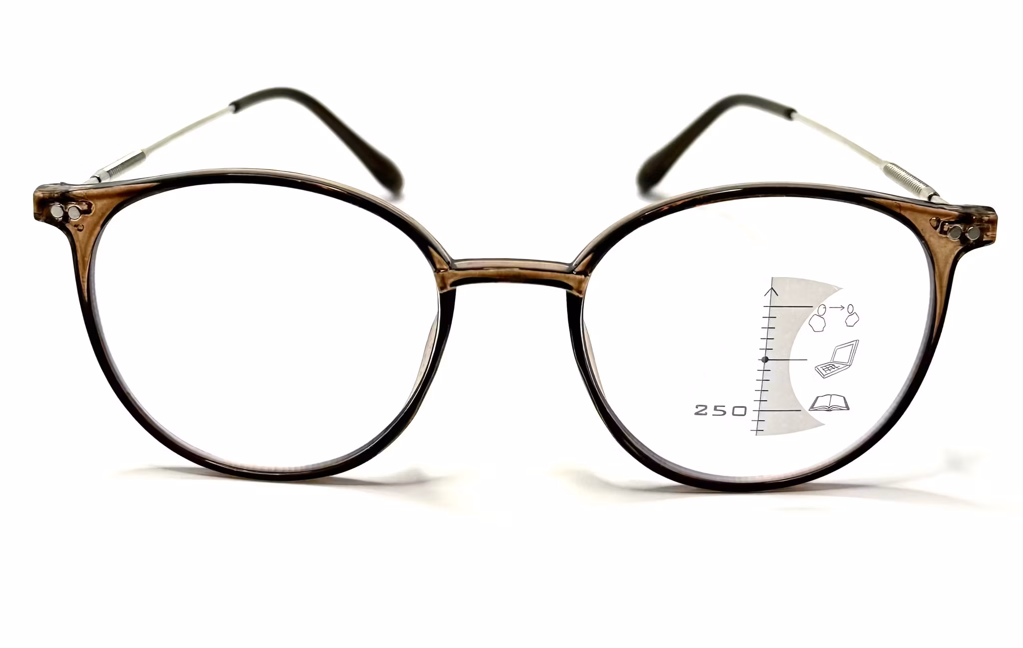 Läsavstånd nedtill, skärm och långtseende upptill